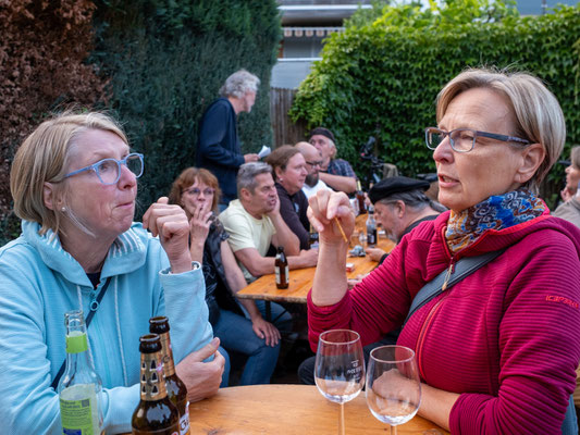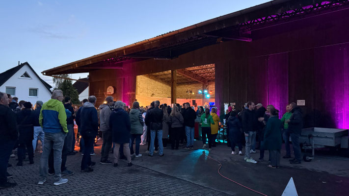 Es war ihnen eine Herzensangelegenheit: Initiatoren dieser Veranstaltung waren zwei Mitglieder unseres Trägervereins, die aus einer Weinlaune heraus beschlossen hatten, das kulinarische Angebot Velbers für einen Abend zu erweitern. Jens und Dieter hatten ihre aktuellen Lieblingsweine der noch jungen aber bereits hoch dekorierten Winzer Jürgen Hofmann (Rheinhessen) und Carolin Willems (Mosel) aus dem Keller geholt. Dabei wurden sie an diesem Abend nicht nur ausgesprochen charmant, sondern auch sehr fachkundig durch Simone Böhm - Sommelière und Dipl.-Ing. für Weinbau & Oenologie der Hochschule Geisenheim University - unterstützt, die durch das Weinerlebnis führte. Kirsten Wiegand von fine-interior in Gehrden präsentierte eine feine Auslese an exklusiven Exponaten und war für die innenarchitektonische "Verwandlung" des Raumes in eine kleine Vinothek verantwortlich. Draußen leuchteten Feuerkörbe den Weg zu diesem kulinarischen Event, das die Gäste sichtlich genossen.